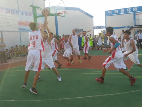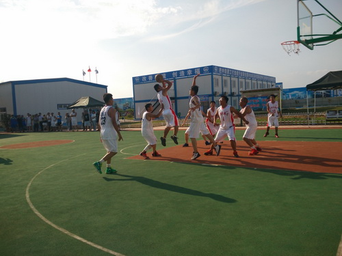 在此次的比賽中,參賽的單位有監(jiān)理3標(biāo)中企建發(fā)、1標(biāo)中鐵十二局、4標(biāo)四川場道、3標(biāo)中國華西、5標(biāo)上海路橋、8標(biāo)中鐵航空港、10標(biāo)中水十六局、6標(biāo)甘肅機(jī)械化共8支籃球隊(duì)進(jìn)行參賽,建設(shè)單位也派隊(duì)參加,進(jìn)行友誼賽,我們跟兄弟單位中鐵航空港,上海路橋,中水十六局、四川場道一決高下,最后入圍四強(qiáng),在決賽的比賽中,我們?cè)俅斡鲆妼?shí)力強(qiáng)勁的中水十六局,雙方隊(duì)員在籃球比賽現(xiàn)場氣氛熱烈,隊(duì)員們積極進(jìn)攻,嚴(yán)密防守,精彩的配合,巧妙的搶斷,不時(shí)的將比賽氣氛推向高潮。天氣雖然炎熱,但絲毫沒有影響隊(duì)員的熱情,盡管兩支球隊(duì)都是業(yè)余籃球愛好者,但他們?cè)诒荣愔芯憩F(xiàn)出較好的團(tuán)隊(duì)協(xié)作能力,一群年輕人激情飛揚(yáng),帶球、傳球、搶斷、上籃,賽場對(duì)抗激烈,隊(duì)員個(gè)個(gè)揮汗如雨,最后在我方隊(duì)員的努力拼搏下,以32:30的比分,贏得第一。