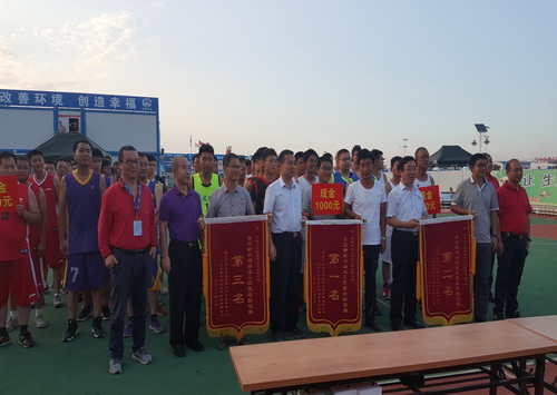 建設(shè)單位指揮部史副指揮長、工程部趙部長、監(jiān)理中企建發(fā)公司隋總為獲得冠軍、亞軍、季軍的籃球隊(duì)頒獎(jiǎng)