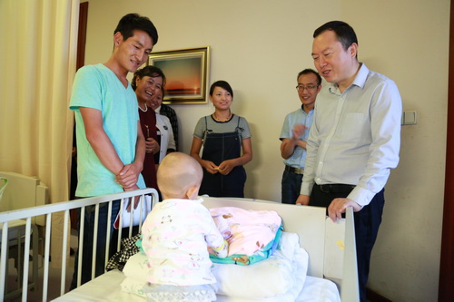 黨委書記、工會(huì)主席祁明海去醫(yī)院看望患兒