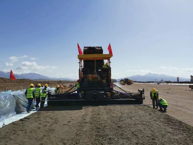 5月28日,伴隨著第一車水泥穩(wěn)定砂礫混合料緩緩倒入攤鋪機料斗,標志著由我司承建的新疆和靜(巴音布魯克)機場飛行區(qū)跑道水穩(wěn)基層試驗段施工正式拉開序幕。