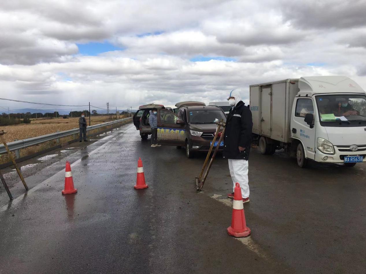 項(xiàng)目部黨支部書記杜騫,第一時(shí)間安排人員對(duì)北門卡口進(jìn)行布置,安排采購疫情物資(醫(yī)用口罩、防護(hù)服、測(cè)溫槍、消毒液等),與10月1日10點(diǎn)左右在新機(jī)場(chǎng)北門疫情防控卡點(diǎn)布設(shè)完畢,配備了12名項(xiàng)目部管理人員(8小時(shí)三班倒)在卡口進(jìn)行疫情防控。新機(jī)場(chǎng)北門疫情防控卡點(diǎn)人員對(duì)過往車輛、人員進(jìn)行登記,掃碼、查看行程卡、核酸報(bào)告、登記來源地、去往地點(diǎn)。對(duì)無48小時(shí)核酸報(bào)告的人員進(jìn)行勸返。