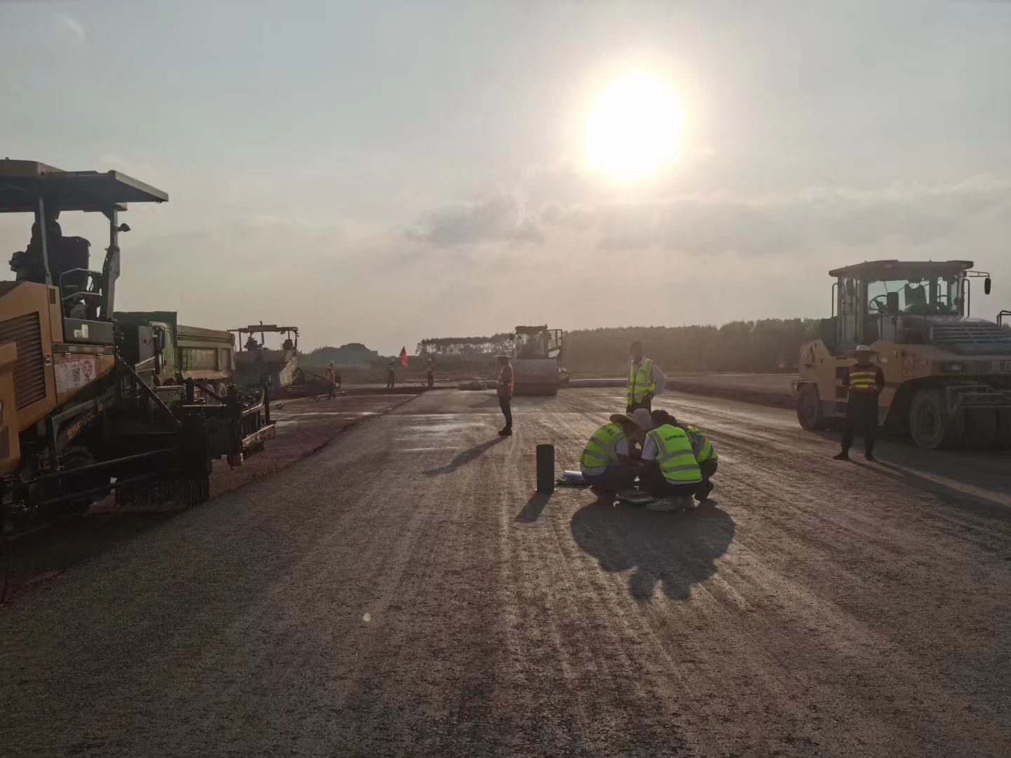 11月28日,隨著第一車水泥穩(wěn)定砂礫混合料倒入攤鋪機,攤鋪機緩緩啟動,標志著由我司承建的南寧吳圩機場改擴建工程飛行區(qū)場道工程(四標段)水穩(wěn)基層試驗段施工正式開始。