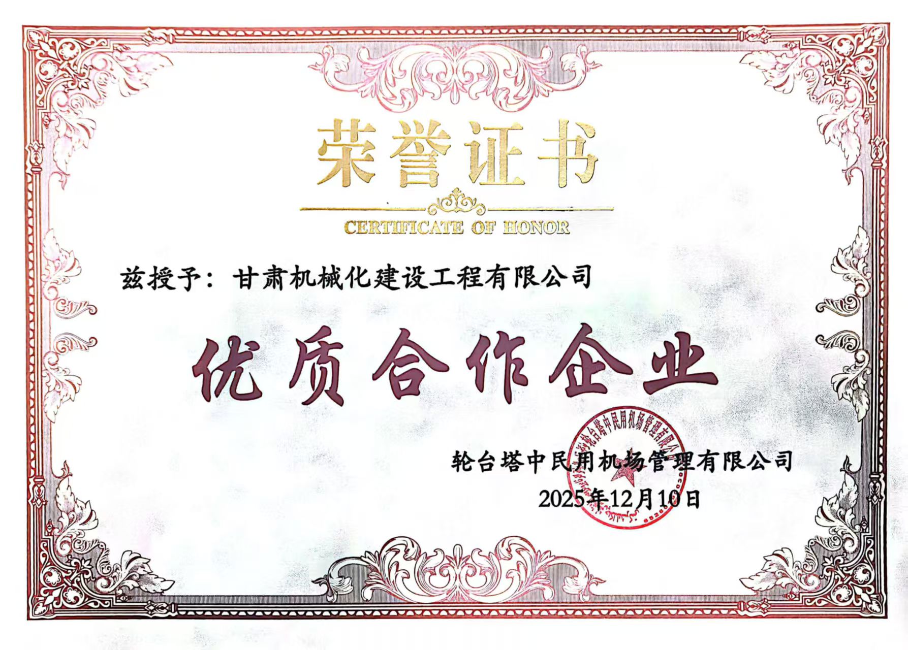 近日,新疆輪臺機場項目業(yè)主單位正式發(fā)布表彰決定,對項目建設期間履約盡責、實績突出的合作方及個人予以通報嘉獎,我司憑借扎實的工程履約能力與優(yōu)質(zhì)服務獲評“優(yōu)質(zhì)合作企業(yè)”,項目負責人同步斬獲“優(yōu)秀項目經(jīng)理”稱號,實現(xiàn)集體與個人榮譽雙豐收,彰顯業(yè)主單位對我司項目建設工作的高度認可。