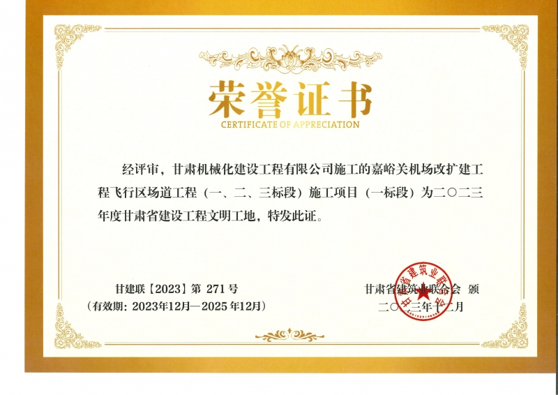 2023年度甘肅省建設工程文明工地 嘉峪關(guān)機場(chǎng)改擴建工飛行區場(chǎng)道(一、二、三標段) 施工項目 (一標段)